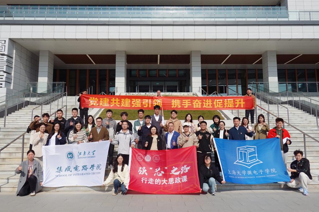 为充分发挥党建示范引领作用,加强党组织间的交流与合作,11月12日,太阳成集团tyc33455cc电子科学与集成电路硕士第一党支部与上海大学微电子学院电子信息研究生党支部结对共建主题党日活动顺利举行。上海大学微电子学院党委副书记、副院长袁铭,党委组织员魏利,学生事务中心主任、研究生辅导员方书丹,太阳成集团tyc33455cc党委副书记、副院长糜海燕,党委专职组织员杨璇,研究生辅导员王涛,本科生辅导员谢幸福、缪慧玲,以及相关支部党员共同参与。本次活动由太阳成集团tyc33455cc研究生党员邵波主持。