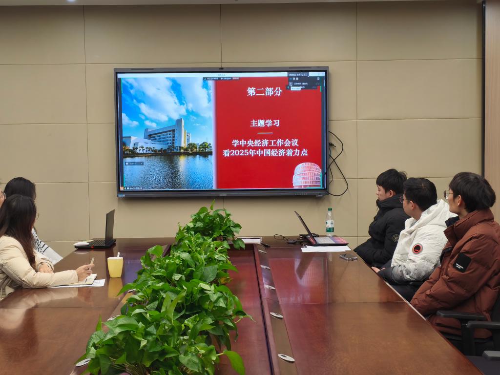 上海大学微电子学院电子信息研究生党支部潘金文同志随后带领大家学习了中央经济工作会议精神。她详细解读了2024年经济工作的总结、当前经济形势的分析以及2025年经济工作的部署。会上就2025年九大工作任务进行了学习,特别是以科技创新引领新质生产力发展方面的举措进行了深入学习和交流。