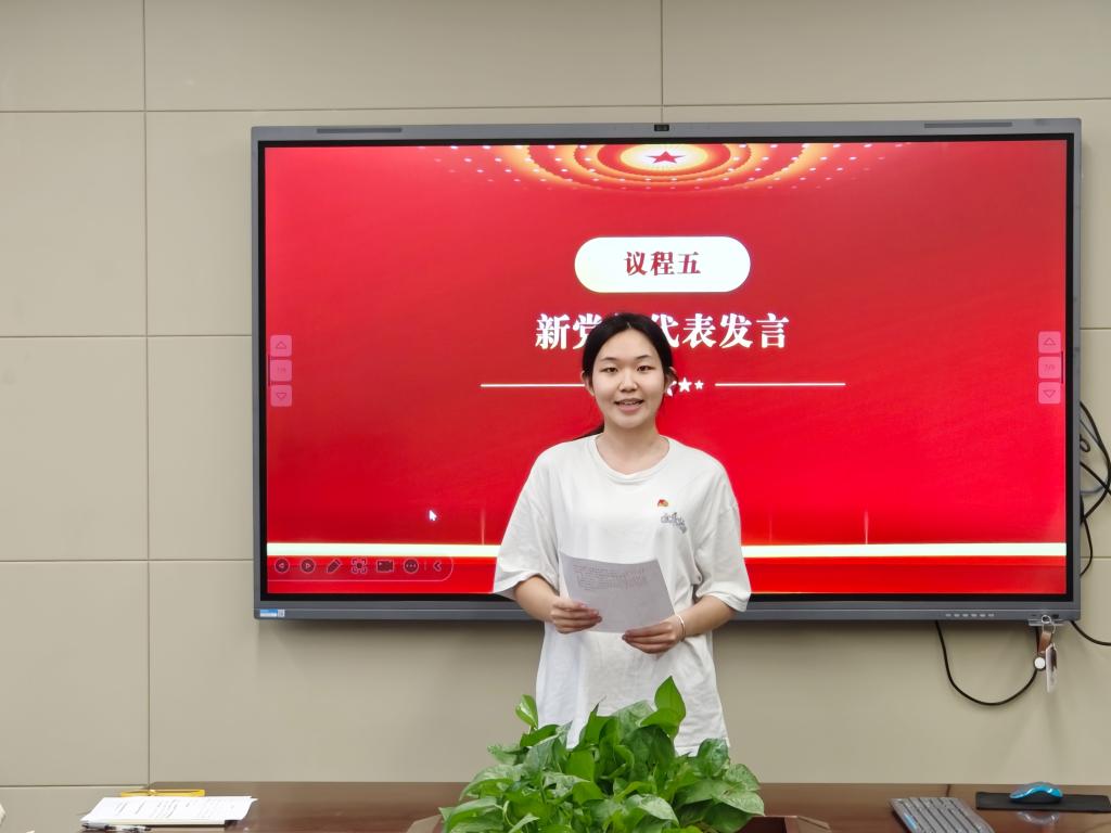 作为老党员代表,电子科学与集成电路硕士第一党支部书记胡浩宇以“三个牢记”与新党员共勉:牢记七一的分量,让信仰扎根血脉;牢记学生党员的双重身份,让责任融入日常;牢记宣誓后的漫长征程,让承诺见于行动。他结合自身经历,勉励新党员既要在实验室芯片研发、学术竞赛中勇攀高峰,也要在理论学习、志愿服务中做好先锋,以科研尖兵和服务标兵的标准书写青春答卷。