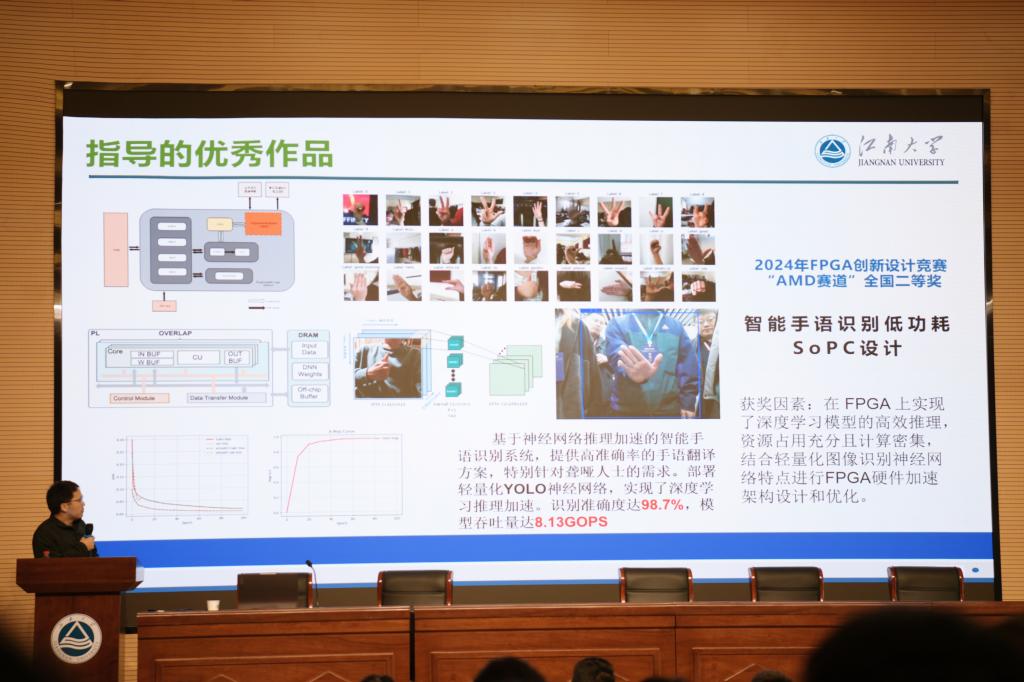 虞致国教授以“集成电路专业学科竞赛的组织与实践”为题,系统阐述了学科竞赛对学生专业能力提升和职业发展的重要作用。他指出,集创赛等A类赛事不仅是技术创新的练兵场,更是培养团队协作、工程实践能力的综合平台。分享过程中,他结合往届赛题案例,深入浅出地讲解了集成电路创新创业大赛、嵌入式芯片与系统设计竞赛、电子设计竞赛等比赛的关键环节和常见问题,并分享了他们在竞赛指导过程中的宝贵经验,强调“找准方向、夯实基础”是备赛关键,并鼓励学生积极利用学院资源,把握校企合作契机,在实战中锤炼核心竞争力。