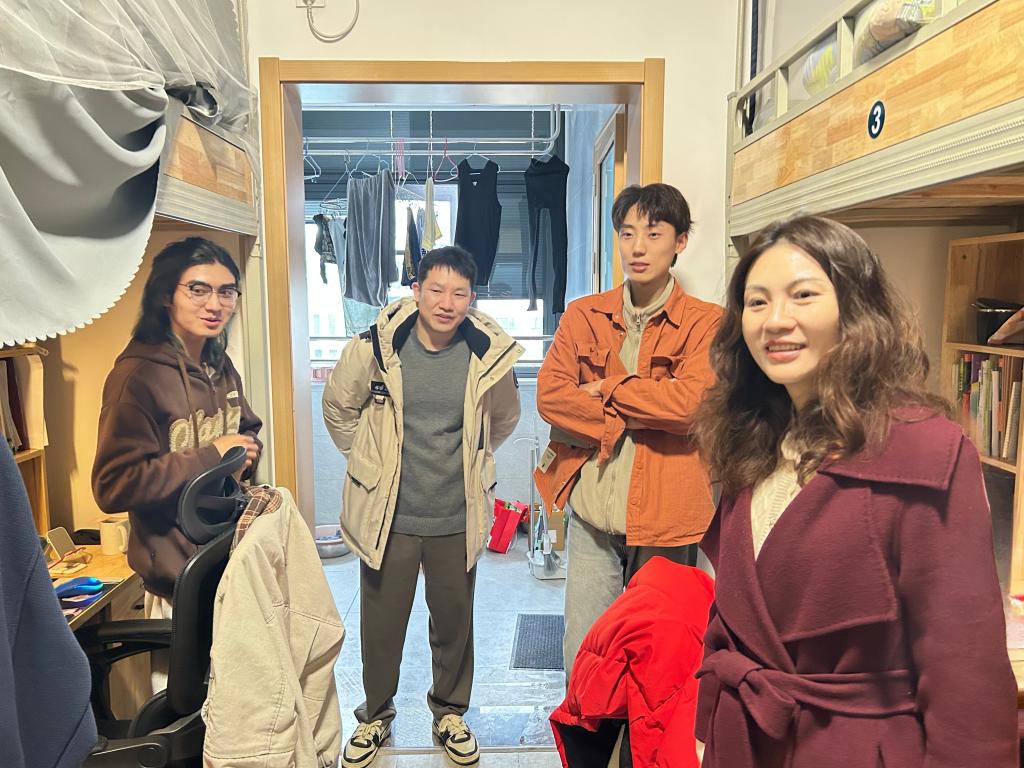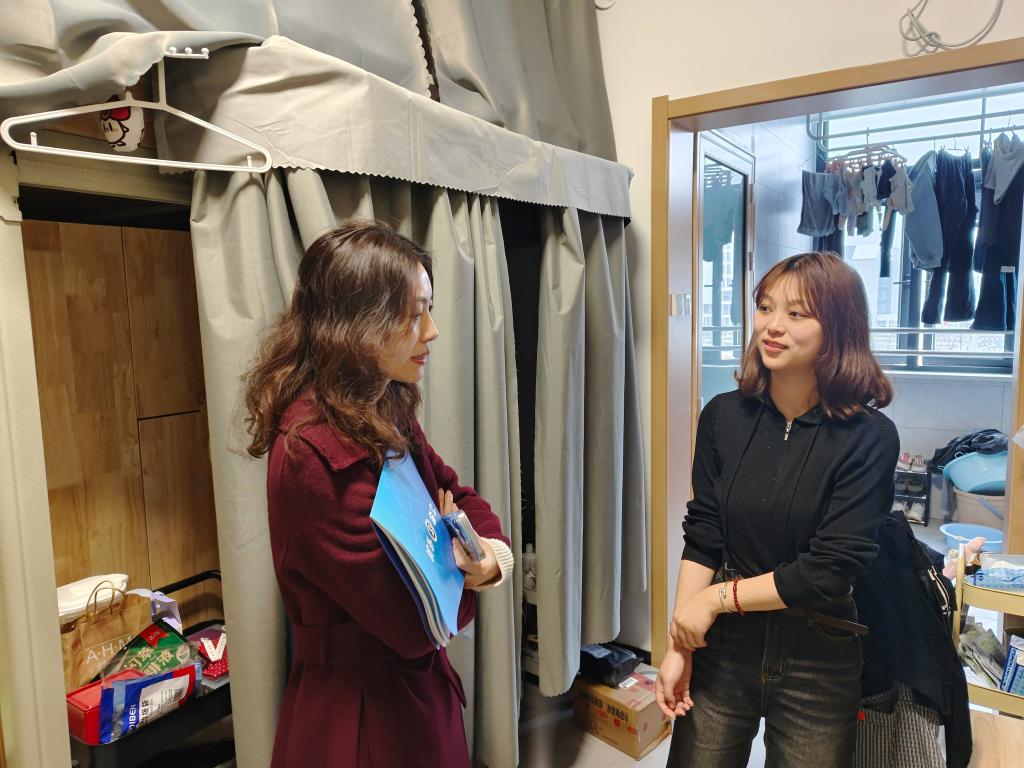 会后,糜海燕带领学院辅导员与班主任深入学生宿舍开展关怀走访,以“双线行动”护航学生成长。走访团队逐一查看宿舍卫生与安全情况,提醒学生严守安全底线;同时与同学们亲切交流,了解学业进展、生活需求及职业规划,针对考研就业、实习实践等个性化问题给予指导建议。