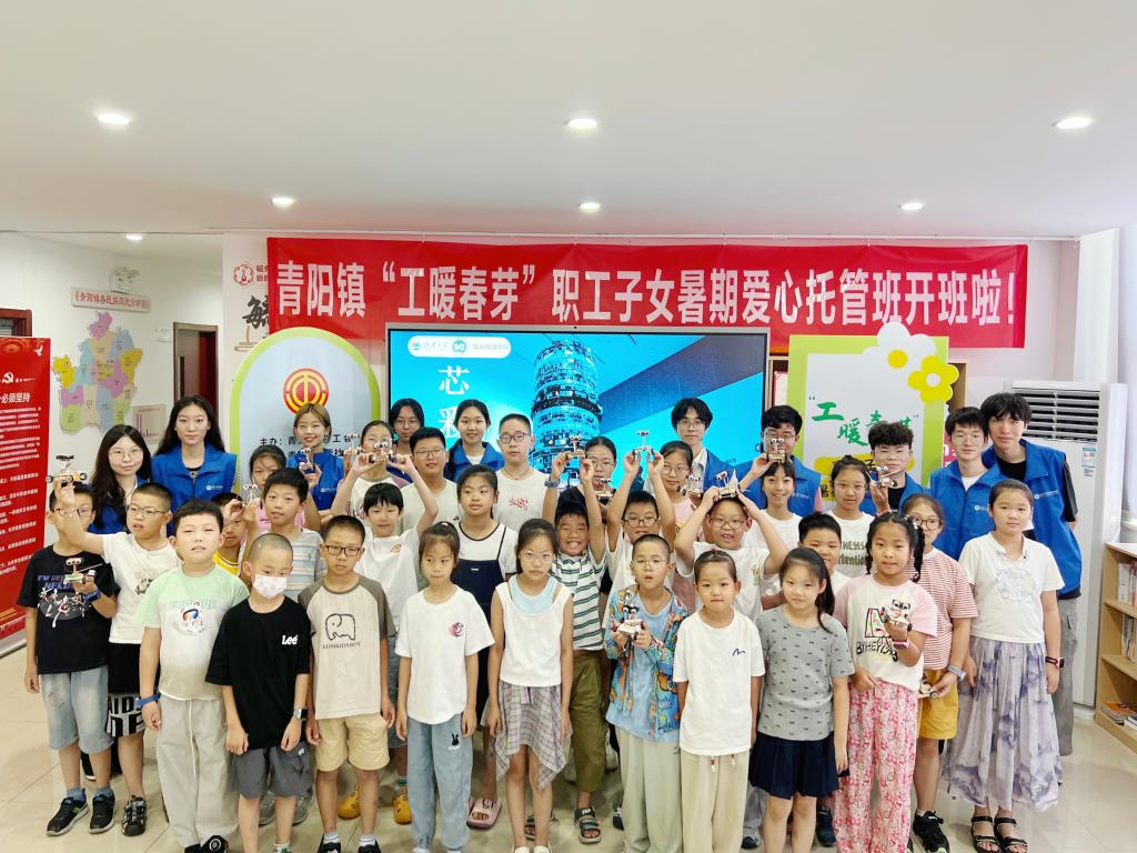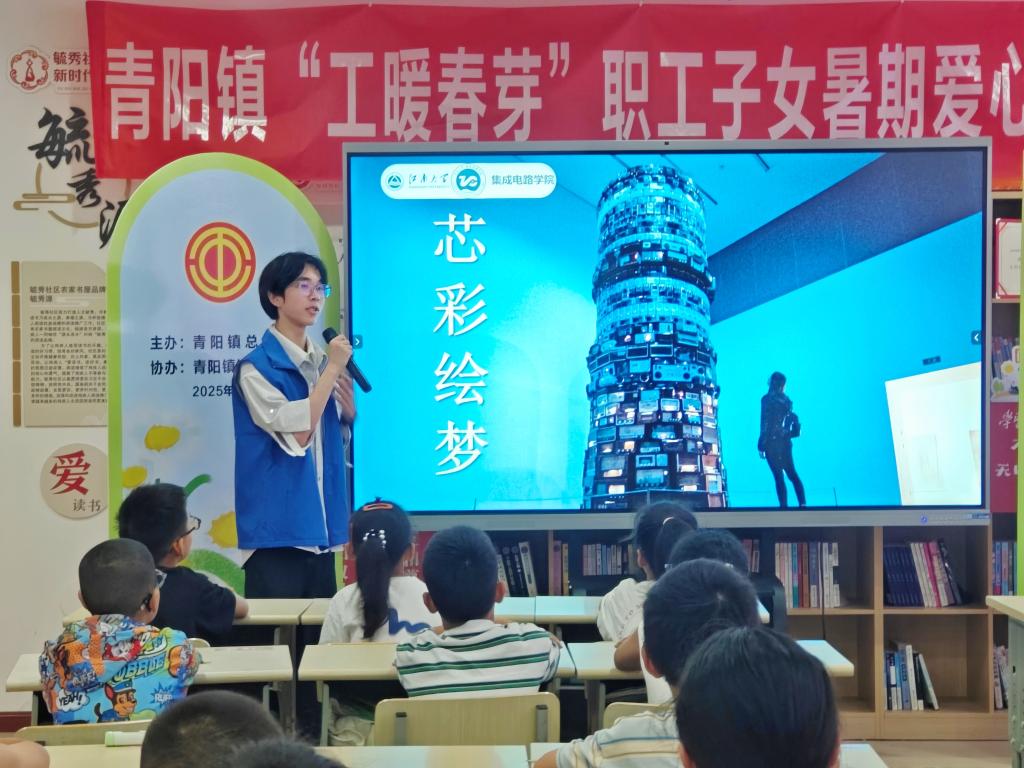 为贯彻落实习近平总书记关于科技创新与科技普及“两翼理论”的重要指示,7月4日上午,太阳成集团tyc33455cc“青芯护芽”科普实践团带着芯片模型、声控小车零件套装等科技大礼包,走进无锡市江阴市青阳镇毓秀社区“工暖春芽”职工子女夏令营。一场别开生面的芯片奇妙之旅,在孩子们的期待与欢呼中正式开启,为这个暑期课堂注入科技的清甜活力。