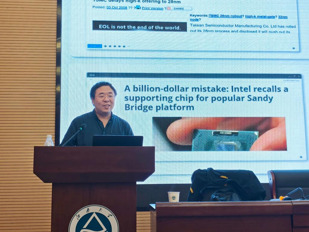 纪志罡教授循着“历史—范式—实践—未来”的主线,系统阐述了集成电路可靠性技术的发展脉络、核心挑战与前沿突破。纪教授首先通过英特尔“Sandy Bridge”召回等真实产业案例,深刻揭示了在人工智能、自动驾驶等新兴领域需求的驱动下,芯片可靠性已成为决定产业成败的关键痛点。然后重点介绍了其团队在可靠性方法论上的范式转变,即从传统的“逆向防御”模式转向主动的、贯穿设计与工艺全流程的“可靠性感知的DTCO”。最后,针对车规级芯片“零失效”的严苛要求和传统可靠性筛选技术的局限性,纪教授分享了其团队在“AI加持的可靠性筛选”方面的突破性实践。