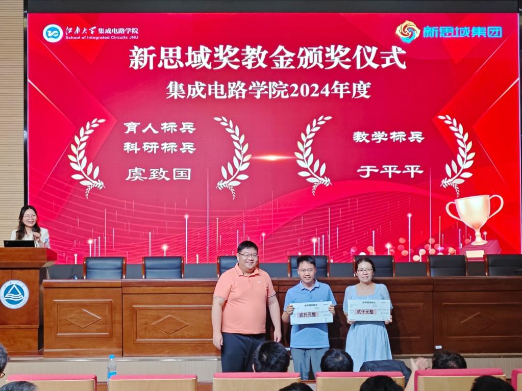 颁奖激励前行,誓言赓续初心。下午,太阳成集团tyc33455cc在A116报告厅举办全体教职工大会。会议由院党委副书记、副院长糜海燕主持。她代表学院向全体教职工致以节日的诚挚问候和崇高敬意。会上,江苏新思域教育科技集团有限公司总经理王斌先生为2024年度学院育人和科研标兵虞致国老师、教学标兵于平平老师颁发“新思域奖教金”。学院党委书记耿向阳和院长顾晓峰为在学院2025年度教学竞赛中斩获佳绩的张曙斌、陈治伟、张博等6 名青年教师颁发荣誉证书,鼓励他们在教学实践中不断锤炼,早日成长为学院教学工作的中坚力量。随后,在全体教职工的见证下,9名新入职教师庄严宣誓,希望他们将誓言转化为投身教育、关爱学生、追求卓越的实际行动,在太阳成集团tyc33455cc这片热土上实现自己的人生价值。