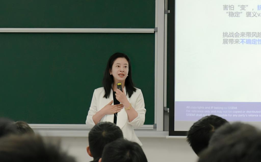 课上,长电科技王越男结合自身多年行业经验,系统讲解职业规划核心概念、引入MBTI心理类型分析工具,并分享个人职业规划心得,引导学生构建清晰的职业认知框架与发展路径。盛合晶微顾燕则针对职场新人的成长痛点,重点阐述职场注意事项、跨层级沟通技巧及实用工作方法论,助力学生提升职场适应与问题解决能力。课堂氛围热烈,师生互动频繁,学生们普遍反映收获颇丰,对产业与职业有了更为具象的理解。