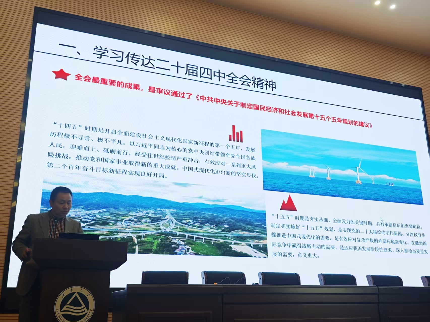 党委书记耿向阳重点传达了党的二十届四中全会精神,引导全体教职工深刻领会会议核心要义与实践要求,切实把思想和行动统一到党中央决策部署上来。在师德师风专题学习环节,耿向阳结合典型警示案例,强调了师德师风建设的重要性与严肃性,要求全体教师坚守育人初心,恪守职业底线,争做“四有”好老师。此外,他还特别针对实验室安全开展专项提示,以真实案例为镜鉴,强化全体教职工的安全责任意识,确保校园安全与教学科研秩序稳定。