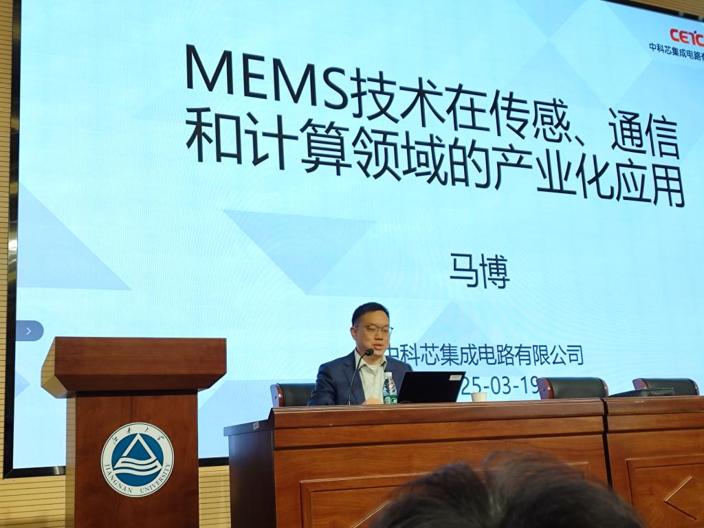马博以“MEMS技术在传感、通信和计算领域的产业化应用”为主题展开讲座,他首先回溯MEMS技术发展历程并介绍了该项技术的工艺和材料基础。据悉,MEMS即微机电系统技术,它融合了机械、电子与材料科学的交叉领域,正以革新性姿态重塑各个行业的技术生态,是现实模拟世界与虚拟数字世界之间需要互动的桥梁。未来,新材料、新工艺、AI世界将为MEMS技术赋能新的创新动力。其后,马博分别从传感、通讯、模拟计算、硅光技术四个方面详细讲解了MEMS技术在这些领域的产业应用。在传感方面,马博分析了MEMS应用在压力传感器、加速度传感器、角速度传感器、封装、热电堆、非制冷红外等技术中的原理和效果;在通讯方面,马博讲解了SAW技术、FBAR技术、SMR技术的特性与应用领域及关键技术点;在模拟计算方面,他提出MEMS谐振器的机械振动频率可被用于模拟乘加运算,显著降低AI推理的能耗;在硅光技术方面,马博指出,MEMS与硅光子学的结合,通过将微机械结构与硅基光电子器件集成,实现了光信号的动态调控和高密度集成,两者的协同推动了光子器件的小型化、动态可重构及大规模集成,催生了高性能光子集成电路(PIC)的发展。最后,马博展望MEMS与半导体产业、前瞻二维材料、AI等领域结合的巨大潜力,引发在座师生对相关领域研究方向与未来发展机遇的深入思考。讲座结尾,师生们踊跃互动,积极与嘉宾探讨交流,整场讲座氛围热烈,师生均收获满满。