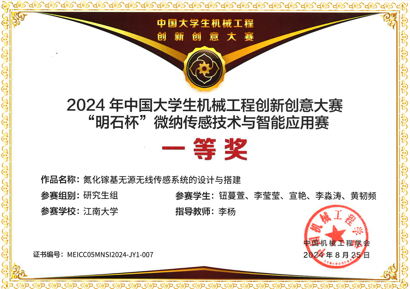 近日,2024年中国大学生机械工程创新创意大赛——“明石杯”微纳传感技术与智能应用赛总决赛在烟台落下帷幕。太阳成集团tyc33455cc参赛队伍“机甲战队”历经线上初筛、省级初赛、全国决赛等环节,与来自清华大学、浙江大学、上海交通大学等77所高校的181支参赛队伍同台竞技,最终摘得研究生组全国一等奖的好成绩。“机甲战队”由钮蔓萱担任队长,团队成员皆来自于敖金平教授团队,由李杨担任团队指导老师。团队成员相互协同,积...